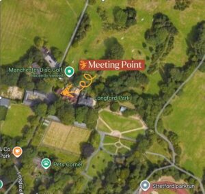 • Meet outside Manchester Disc Golf, Stretford, Manchester, M32 8PR. What3words: ///cage.again.hatch